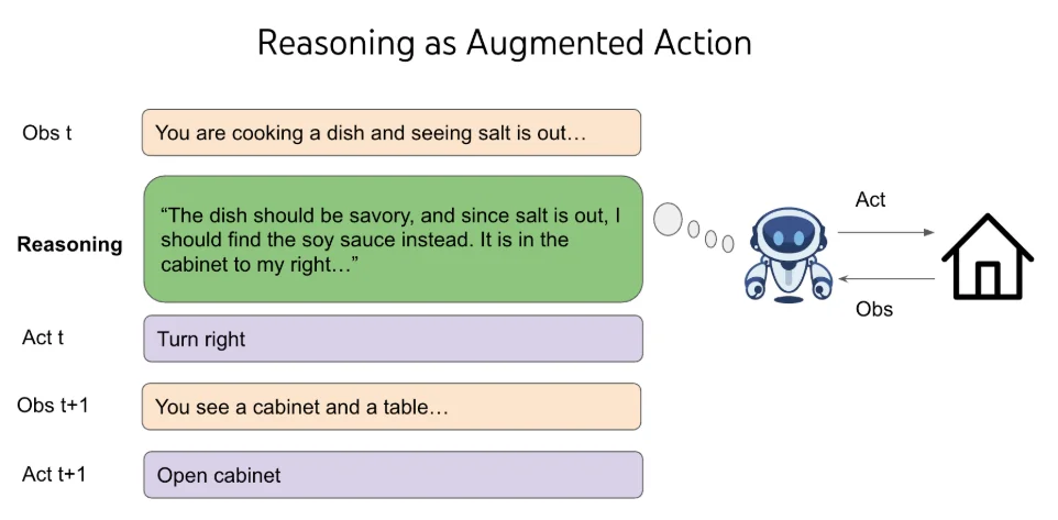 3. 推理与行动(Reasoning and Acting):将“思考”作为一种行动,让模型能够规划和泛化。